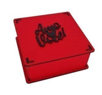 Produzida em MDF pintado 2,5mm, a caixa tem formato quadrado com tampa de encaixe, garantindo fechamento firme e seguro. Na tampa, um aplique branco com a frase “Amo Você” transmite a mensagem de maneira direta e delicada. Disponível em três cores — vermelha, branca e tabaco — e em quatro tamanhos (10x10x5cm, 12x12x5cm, 15x15x5cm e 20x20x5cm), ela é ideal para kits pequenos, lembranças personalizadas ou embalagens criativas.