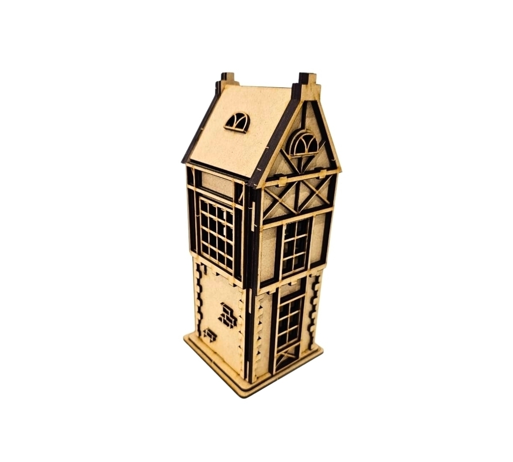 A Casinha Miniatura Decorativa Alemã – Modelo 3 é inspirada nas charmosas construções europeias de estilo enxaimel, trazendo autenticidade e delicadeza em cada detalhe. Produzida em MDF cru 2,5mm com corte a laser de alta precisão, possui estrutura vertical com janelas em diferentes formatos, detalhes de tijolinhos aparentes e telhado inclinado, proporcionando um visual encantador e realista.