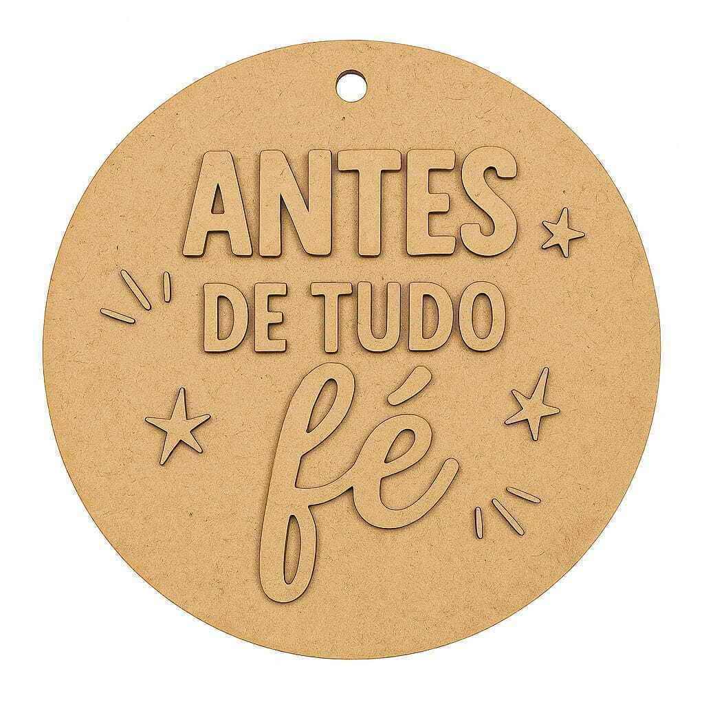 O Pingente Redondo MDF cru 12cm – Antes de tudo fé é um produto cheio de significado, ideal para quem busca unir espiritualidade, personalização e decoração. Fabricado em MDF cru de 2,5mm com corte a laser de alta precisão, este pingente é fornecido em kit com fundo liso e apliques separados, que podem ser pintados e colados, garantindo liberdade criativa para artesãos e apaixonados por DIY.