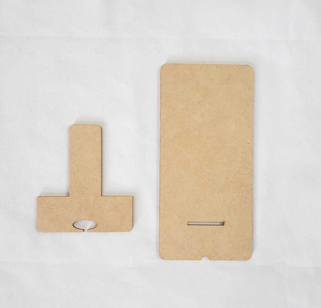 Produzido em MDF cru de 2,5mm, ele oferece resistência e um visual neutro, pronto para ser personalizado com tinta, découpage, pátina ou outros acabamentos artesanais. A abertura inferior permite a passagem do fio de carregador, facilitando o uso mesmo com o celular plugado na tomada. É o acessório ideal para quem valoriza organização, funcionalidade e criatividade no dia a dia.